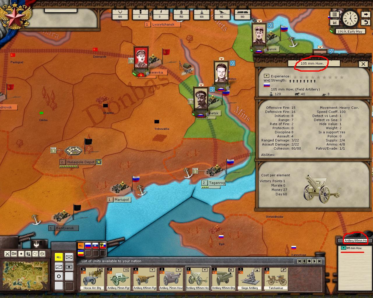 2. There is a howitzer in the game wrongly named 105mm howitzer (see picture attached), but it is designated as 122-mm howitzer in the graphics folder of the game, which is correct. There indeed was a 122-mm howitzer in WW1-era Russian army. http://ww1.milua.org/R122hovizer0910.htm and http://en.wikipedia.org/wiki/122_mm_howitzer_M1910/30 If you see these pictures and compare them with the so called 105-mm howitzer, you'll see that they are almost the same. So some corrections are needed here, i suppose.