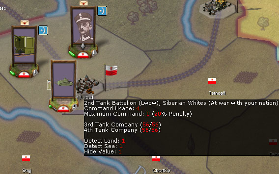 • Stanisław Skrzyński (CO 16th Division; no traits). Well, technically he was the commander of the 16th division in the spring of 1920. However, the division was divided and only one brigade fought in Ukraine, while the rest was stationed safely in Pomerania. It was not until the summer when it entered the fights as a single unit, but by then Skrzyński was replaced with Kazimierz Ładoś. Any idea how to represent that in-game?