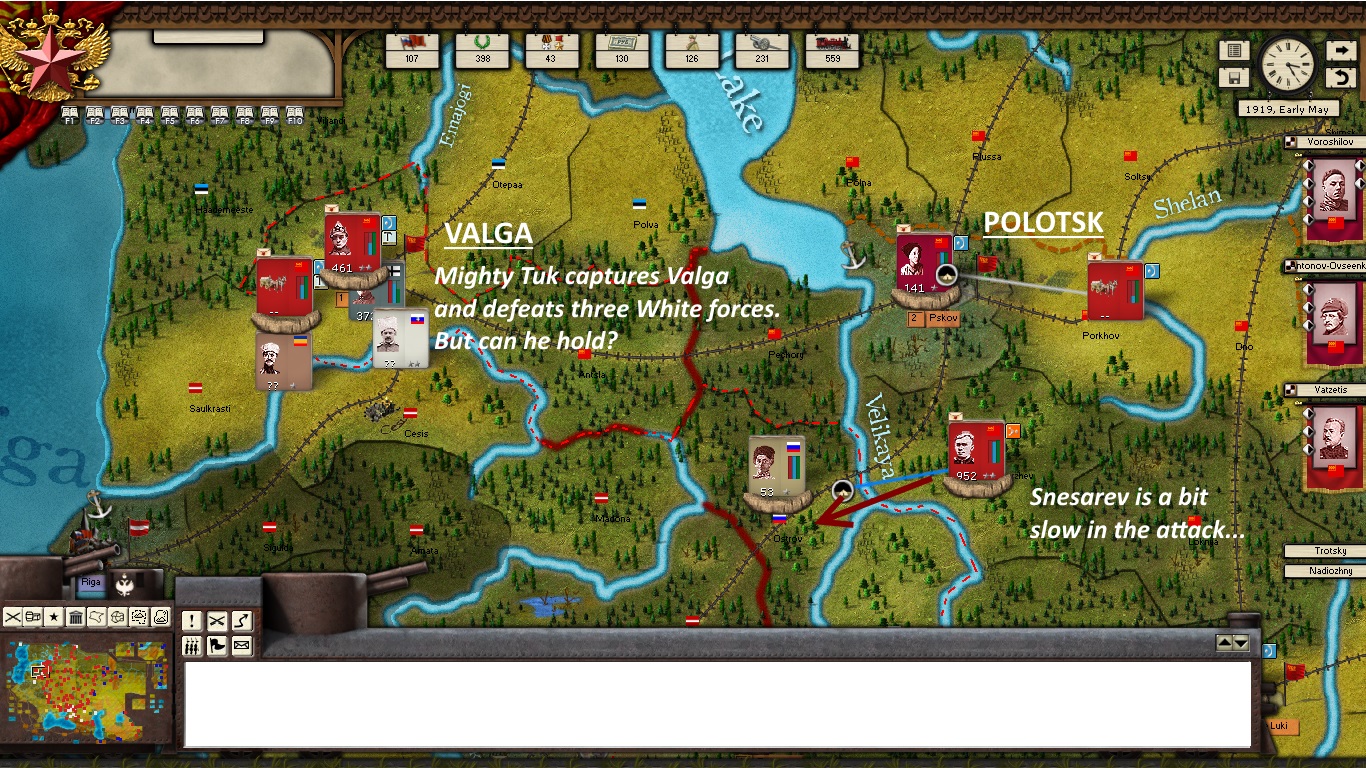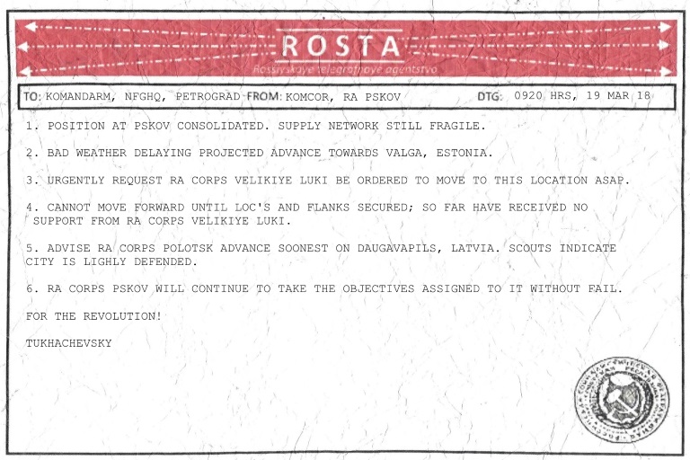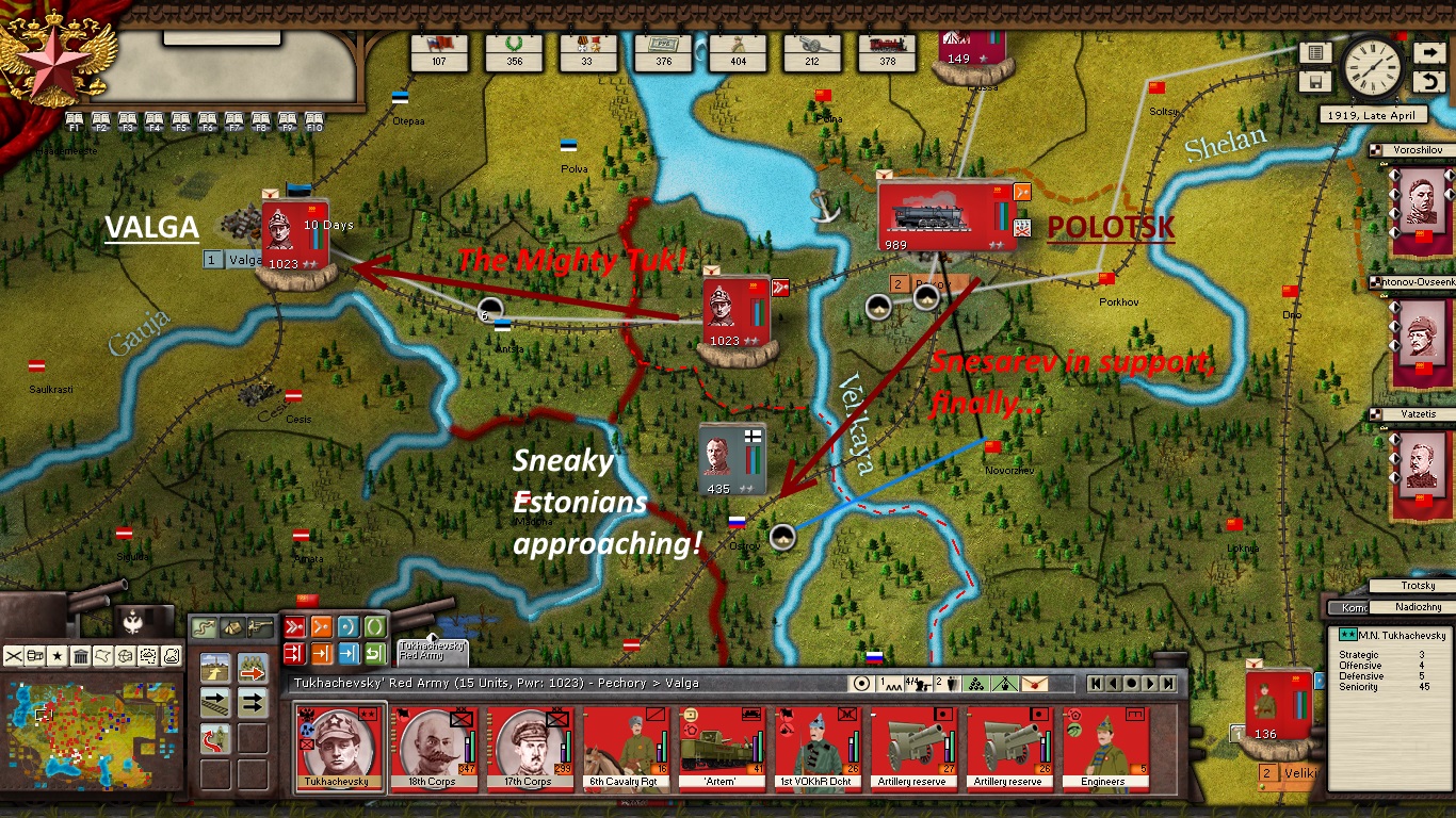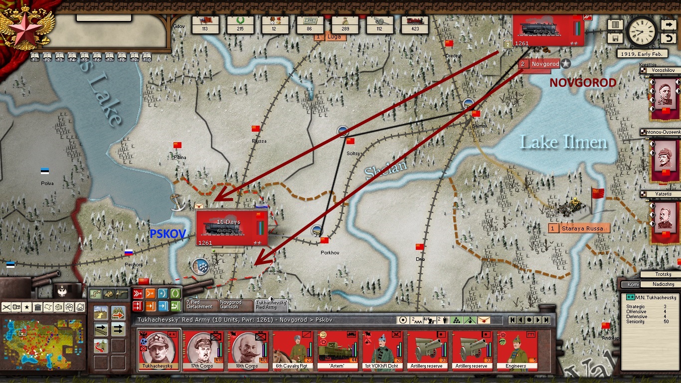 - Mighty Tuk is resting his Corps at Pskov in preparation for attacks westwards. KOMCOR Snesarev will be in support.