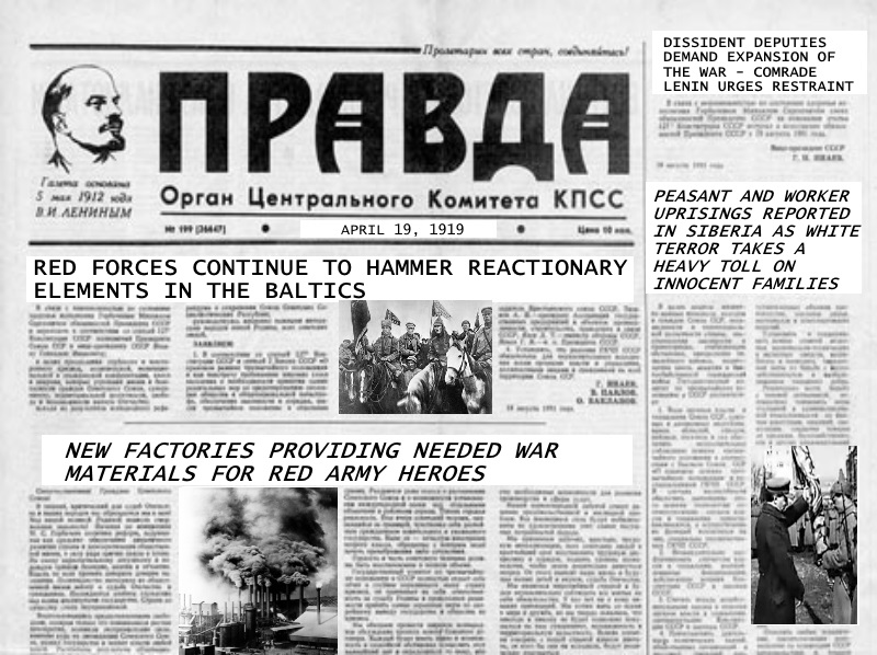 - The coalition government continues to be roiled by internal dissension. Lenin refuses to expand the war!