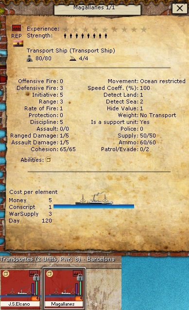 Finally i have decided to include transport ships in the game. I think the game is better with them but there are just a few of them and with small capacity.