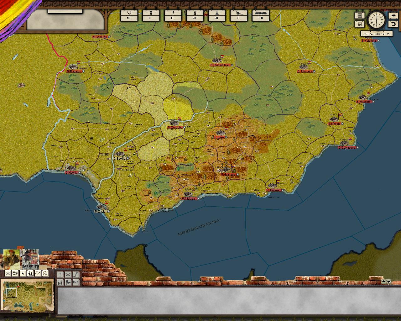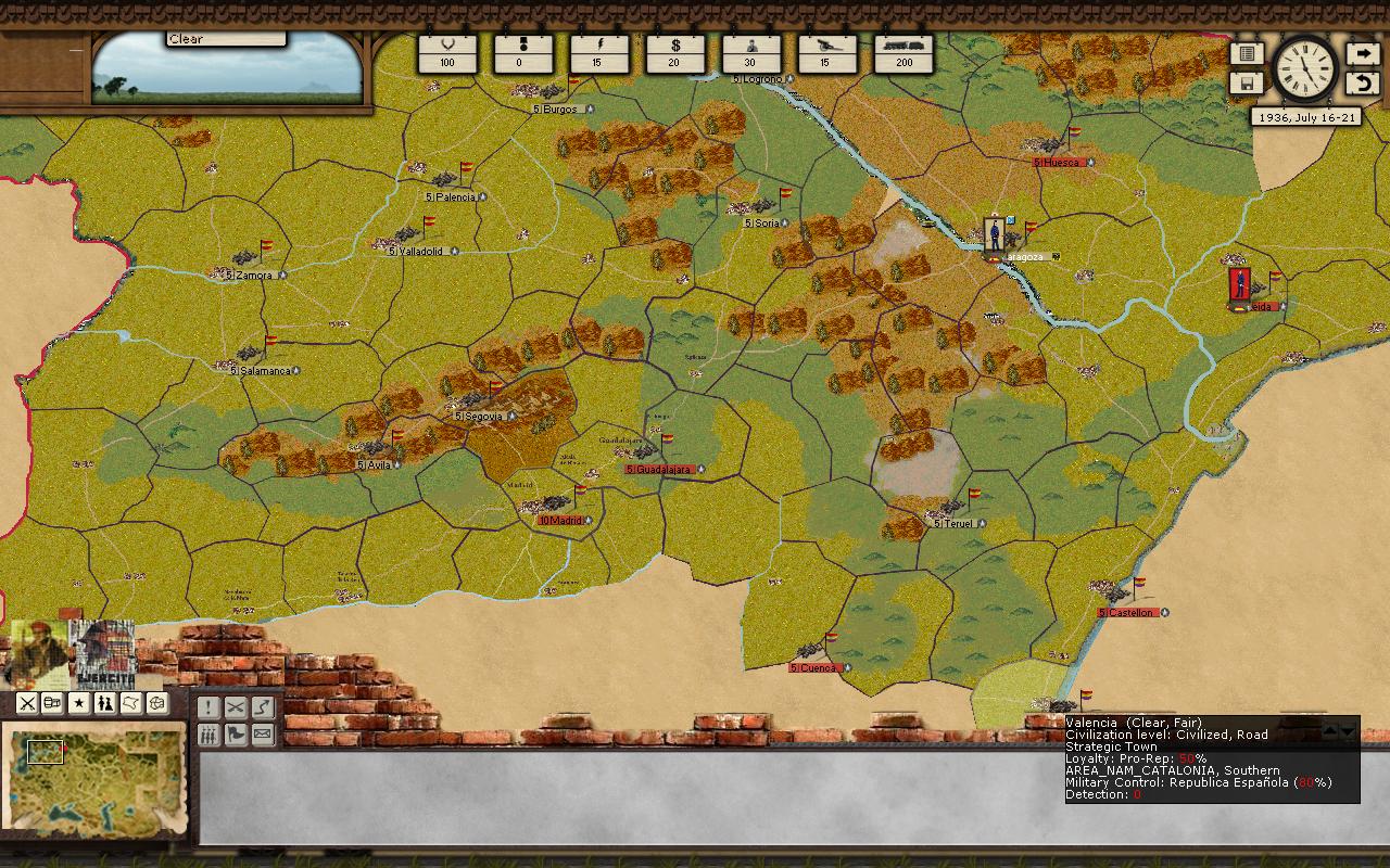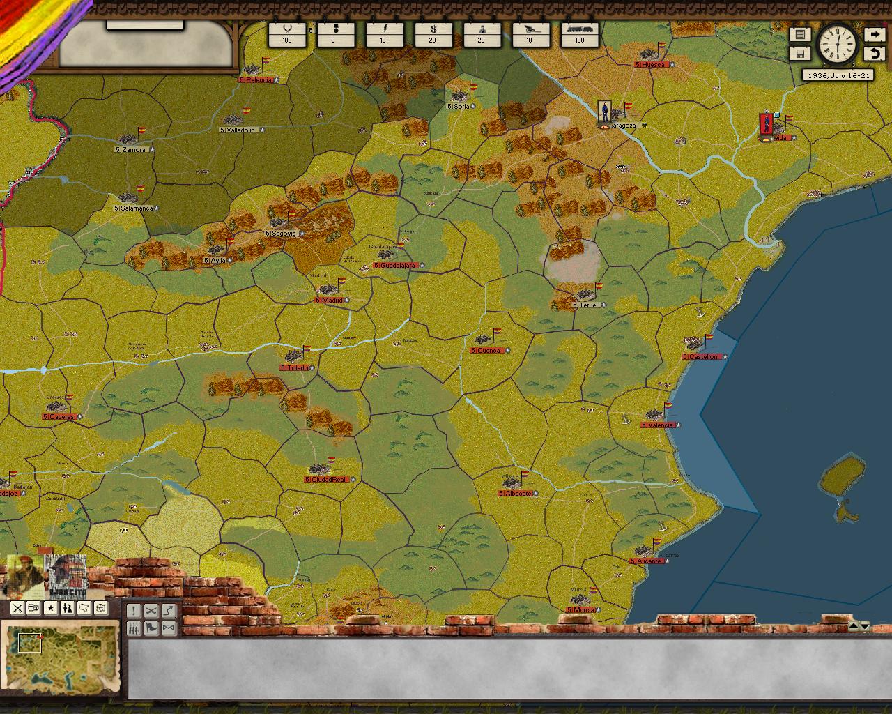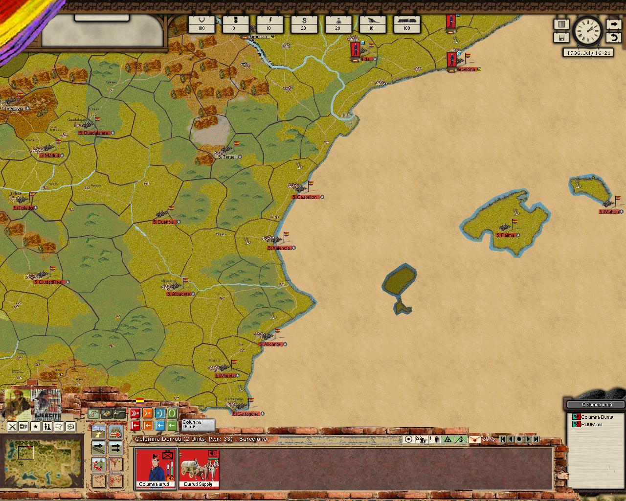 In this test i played only Nationalist, leaving to the IA the Republicans. I have put more militias but most of them are static units in order to reflect that in the first months of the war the Republicans cant do real offensive actions. But there is the Miaja Columna and another from Almeria.