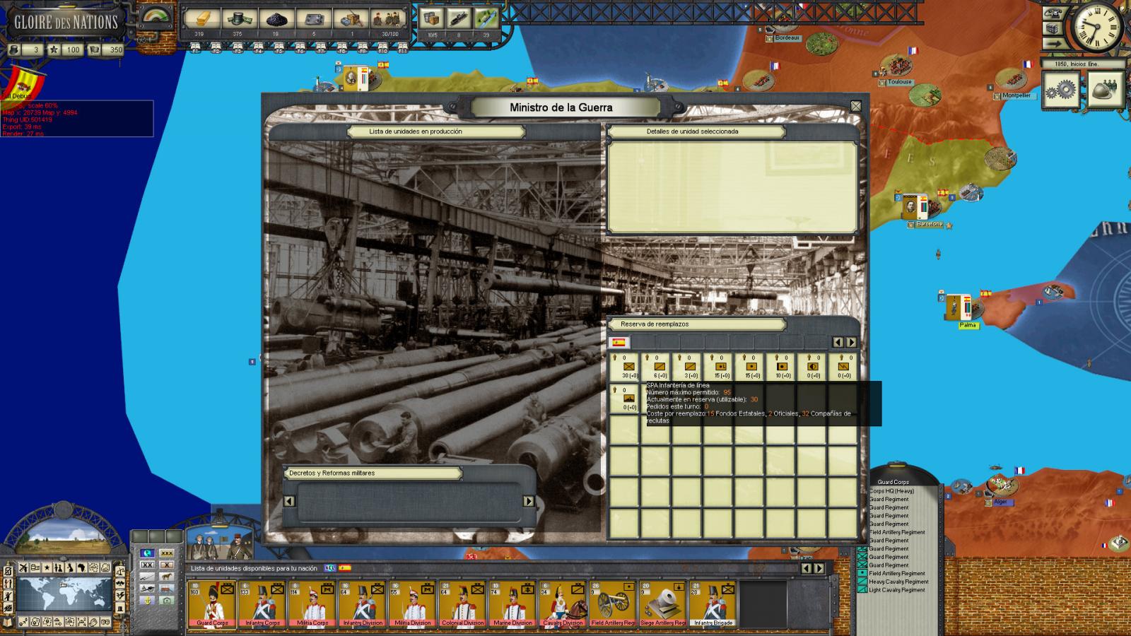 Estoy de acuerdo con todo. Lo de dar SoI positivos no sabría cómo hacerlo, habría que indagar. Y lo de las opciones coloniales estaría bien añadir las que tienen los ingleses, que son todas, según creo. Ya puestos habría que hacer alguna Academia del Ejército y de la Armada, como tienen los grandes, y algunas cosillas más. Lo del pool de unidades, no sé muy bien a cuáles te refieres que te gustaría tener.