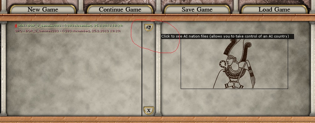 Now I am playing a few turns in the Samnite War, but in the 'Load game' menu I see only the Samnite side.
