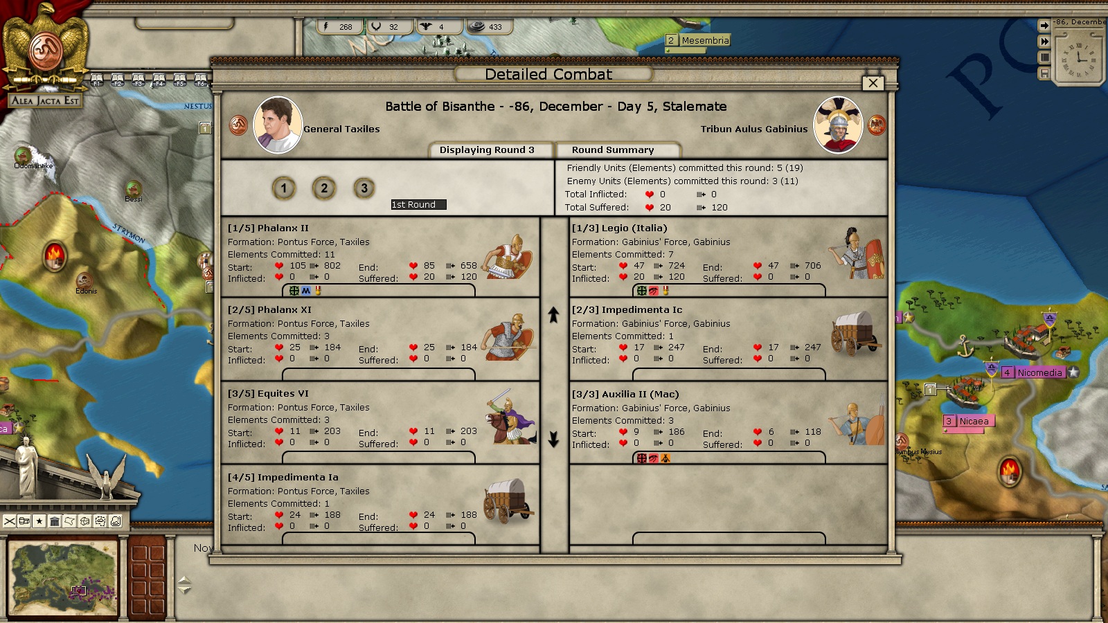as you can see the AUX for the Romans did suffer hits. from 9 to six. many elements did not participate in the battle at all