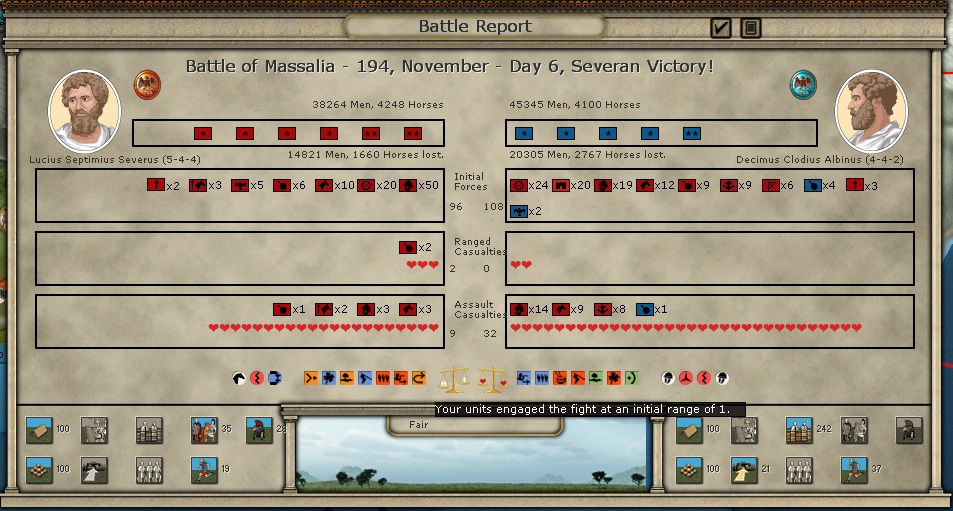 What i see in battles is that, altough enemy start range is 2 and mine is 1, in the first round i see an amount of hits comparable to a melee phase. This is confirmed by whatching at the overall general report where you see range hit/losses and melee hit/losses.