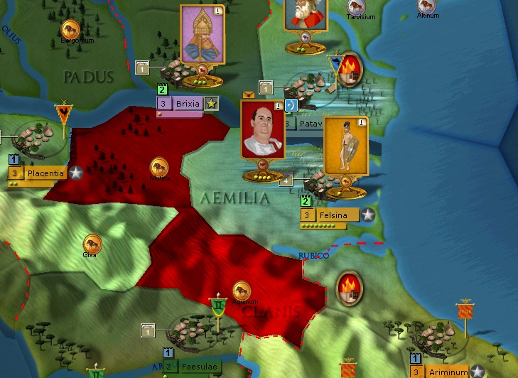 I've been reading the manual cover to cover and search the forums here but can't find out the answer to this: when I click on any of my leaders, pretty often 1 or more provinces nearby will be colored red (see picture where the Roman consul stack is selected). I cannot find out what this red color means, and I have no map filter selected. Anyone knows?