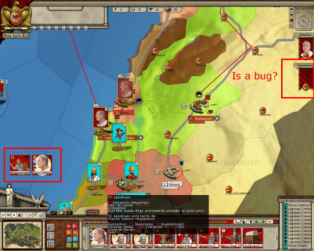 I merged Vespasianus with XV Appolinaris Legion. Then, the image of Vespasianus in the right portrait disappears, and I can't click on it. Is a bug?