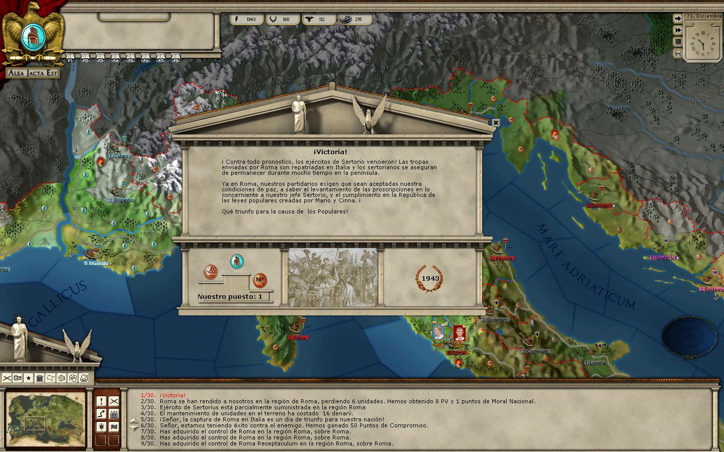Hola compañeros, acabo de terminar mi primera partida jugando con Sertorio y este ha sido el resultado: