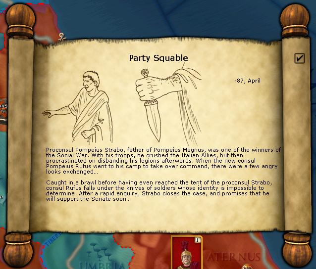 So, the year -87 finds Rome divided for the first time. Slaves, pirates, Pontics, Populares... it will be an interesting war to say the least...
