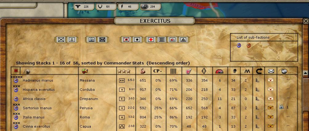 It is all about Rome, at all costs! African units are shipped to Sicilia, barely avoiding the pirates, and slaves are formed into their own legion up north.