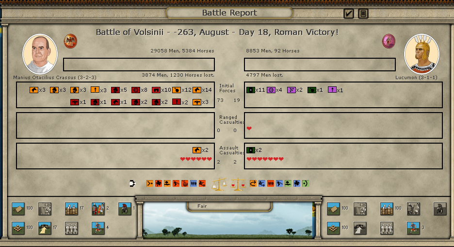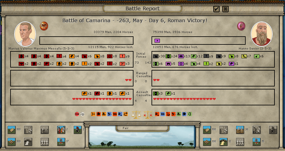 Well I think I have got a little cocky, overstretched myself and have suffered the consequences. Not a terrible turn for Rome but probably the worst since the war started. The Carthaginians will get a morale boost from it. It wasn't all bad!