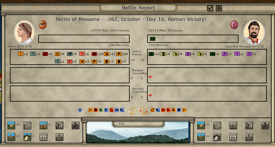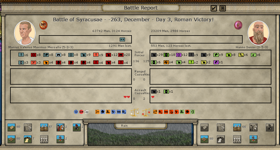 Stratego attacked Max and Hiero's combined army in Syracusae. Casualties were heavy on both sides but Rome emerged victorious.