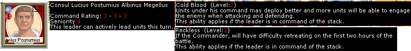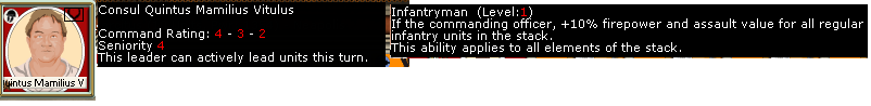 My two consuls have been replaced again. I am not impressed with the hand I've been dealt. Lucius Valerius Flaccus has taken over in the South. He is a 2-1-3 general :( and Titus Otacilius Crassus has taken over in the North. He is a 3-1-4. :/ They have no traits at all that make up for their lacklustre stats.