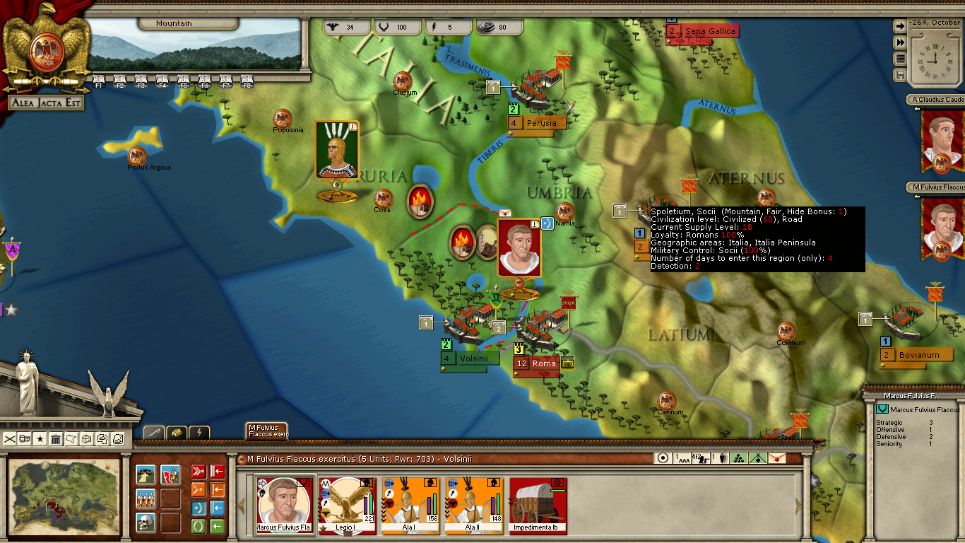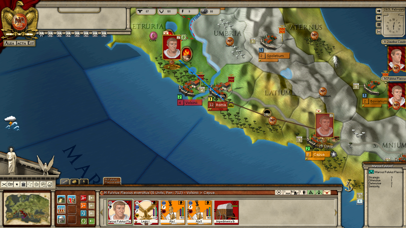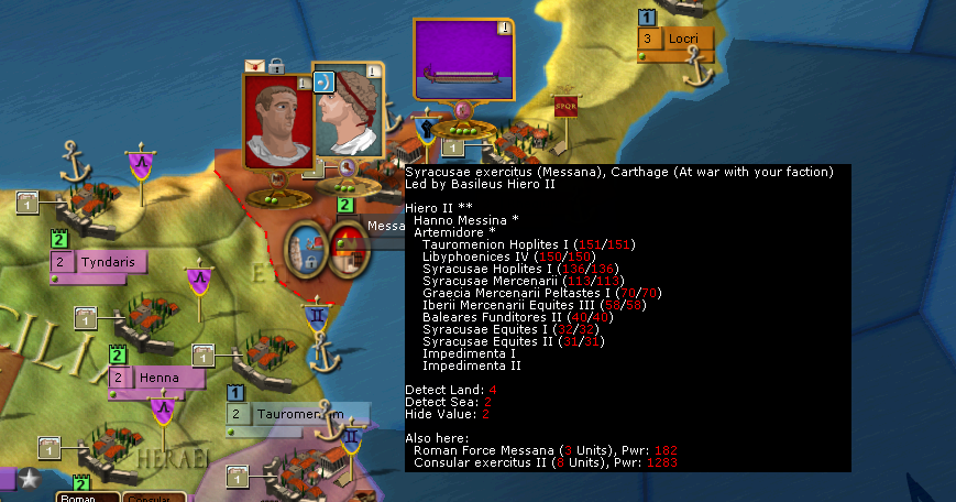 ) spending the 5 EP to allow a night crossing in case the Carthaginian fleet tries to block it by normal means. I left him on Defensive.