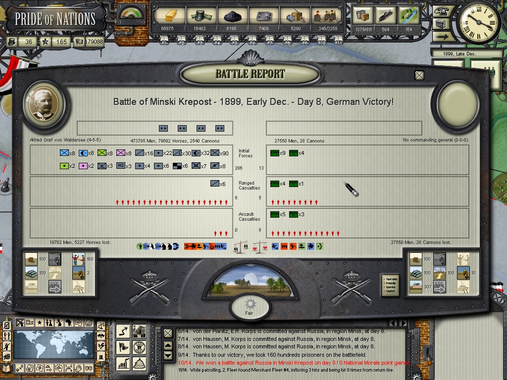 We have defeated the russian forces at Minsk, this was a costly battle, after 3 dificult battles we were able to defeat the russians there.