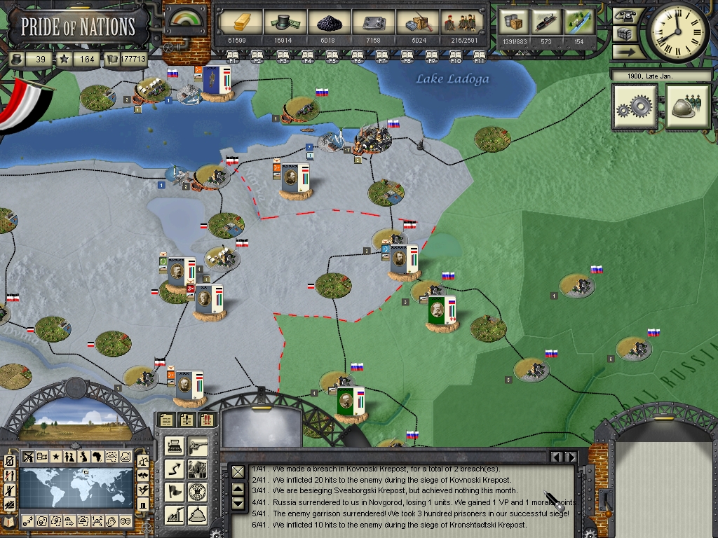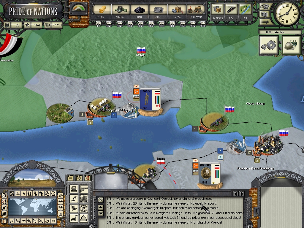 Bronsart von Schllendorf captured Helsinki from the russians, what greatly boosted the support for Germany there. We have breached the fortifications of Saint Petersburg, our soldiers eagerly awaits the order for the assault! The war finally seems to be coming to an end.