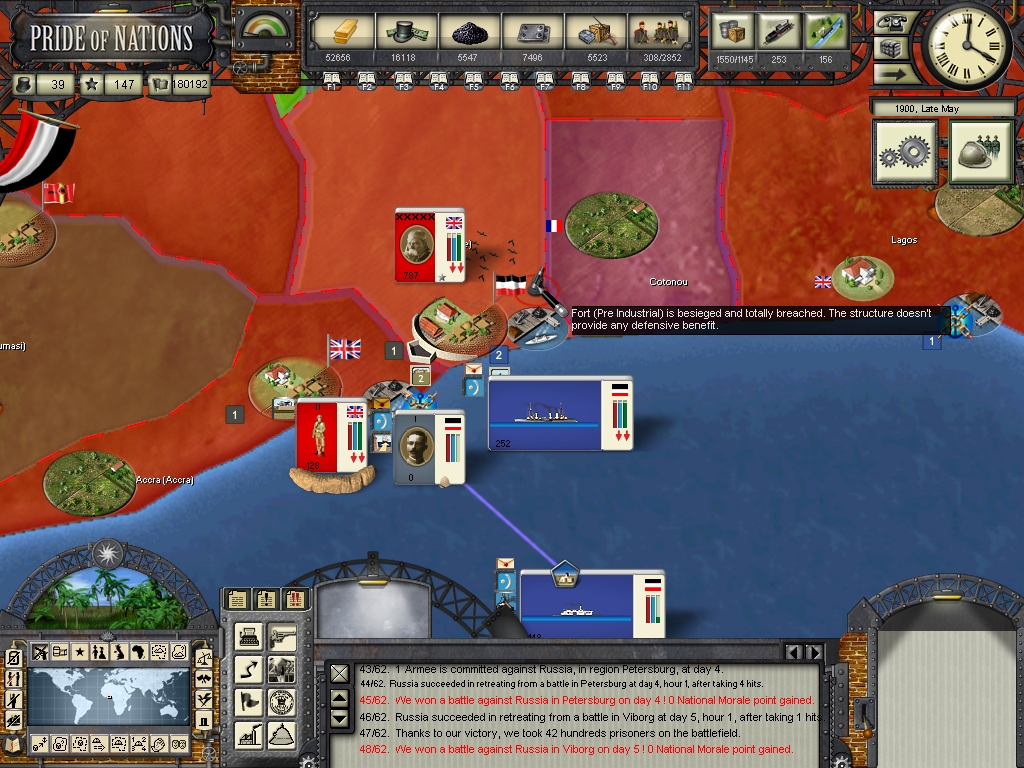 loki100 wrote:I'd suspect that both you and GB are going to be rather stretched for a while, they are doing very well taking apart your colonial empire (again its good to see what the AI can do if it has the naval power it needs), but you've not really been able to commit very much to those sectors with your main armies tied up in Russia