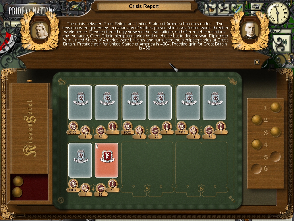 But it was the Americans that pressed their hand. The "Just Cause", I think, goes to the USA in this case, reversed at the last moment. But I must read this again in the manual as I think they are the reverse of the "Domination"... The Prestige invested has been decreased in the final actions, too bad the Americans tried the hard way.