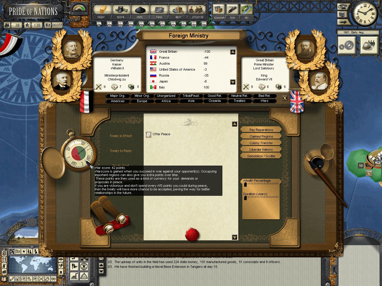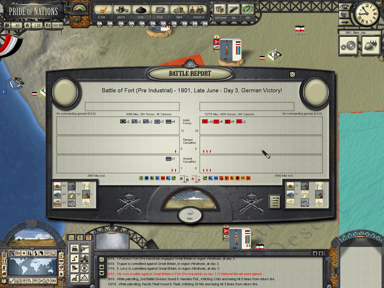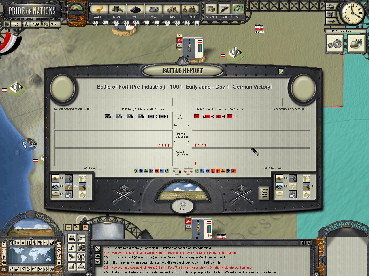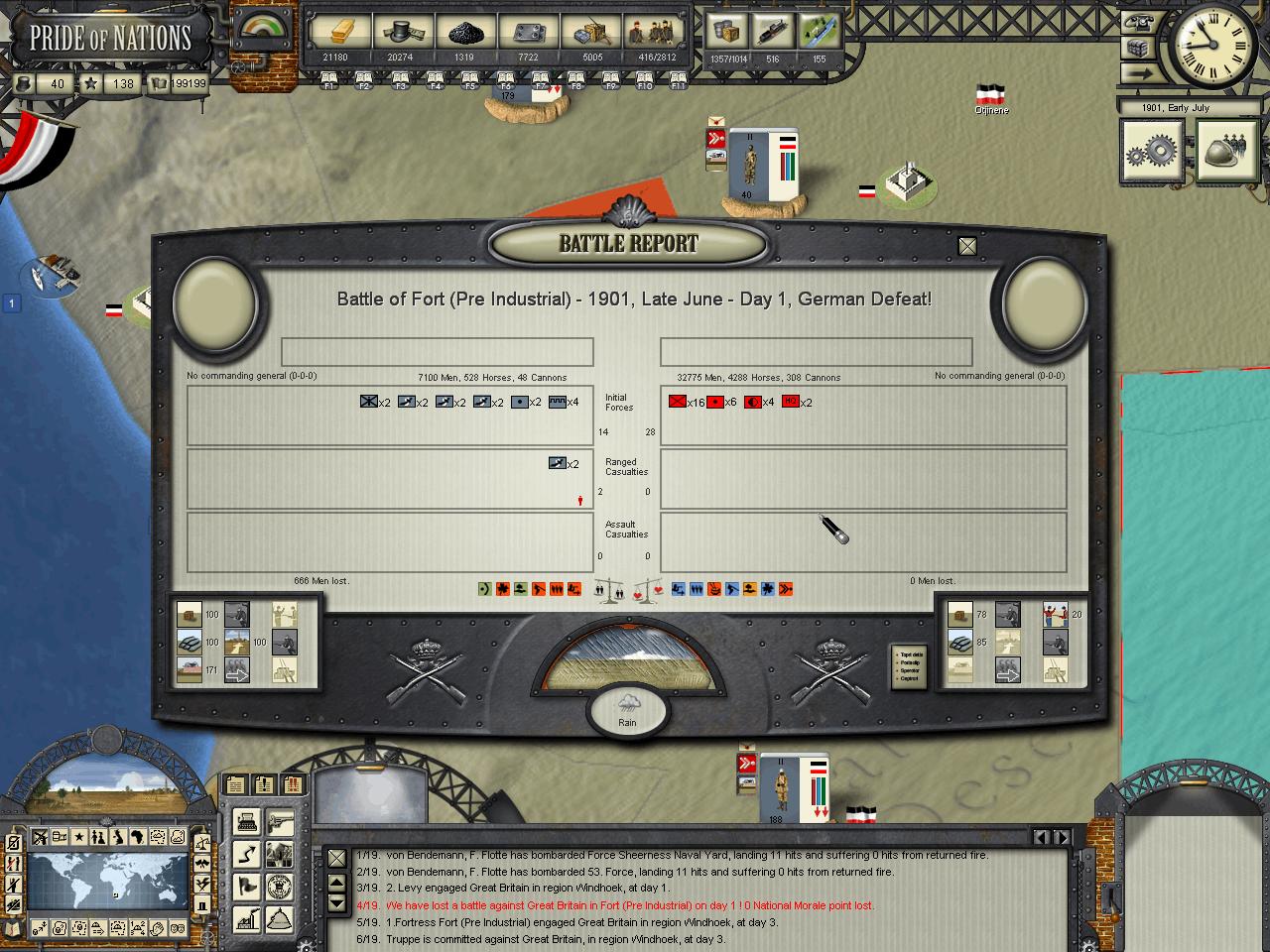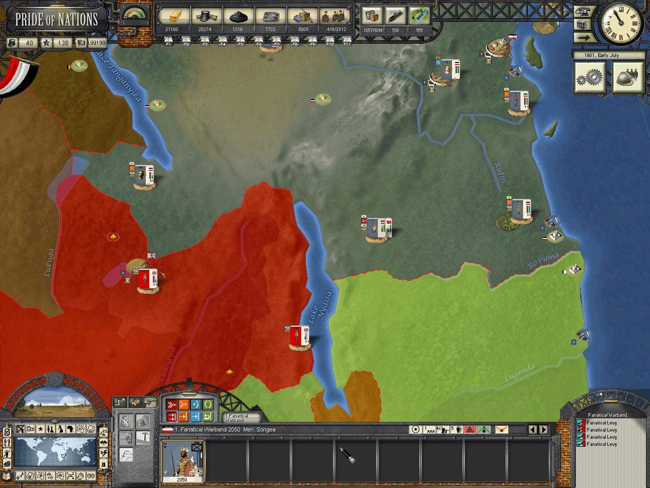 Kensai wrote:HerrDan, could you post some images of the map "zoomed out" (MC filter) so we can have an understanding of who owns what in Africa at the moment? I think your situation is not that critical, but you may need to focus on one-two colonies at a time. The British AI, in my experience, tends to move around troops around theaters in very strange ways. By later stages of the game I tend to find Canadian troops in India, Indian troops in Africa, etc. The AI moves troops around a lot, sometime disregarding the potential inherent penalties some guys can have when they fight out of their locales.