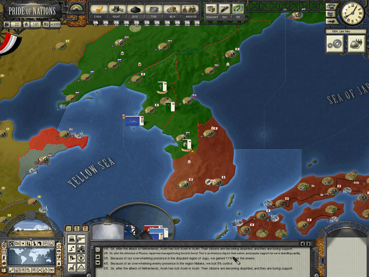 The Russian offensive continues and the Tsar's army has captured Seoul in the korean peninsula, it looks like the Japanese position is hopeless. I'm very impressed with the Russian performance in this war, they seem to have recovered quite well from their defeat against us, even though Japan isn't nearly as powerful as we are, the swiftness of the Russian response to the attack on Port Arthur is quite impressive indeed. Perhaps we should give the Japanese some support, although we do not want to get directly involved in this conflict in the Far East we could at least give them some economic and diplomatic aid.
