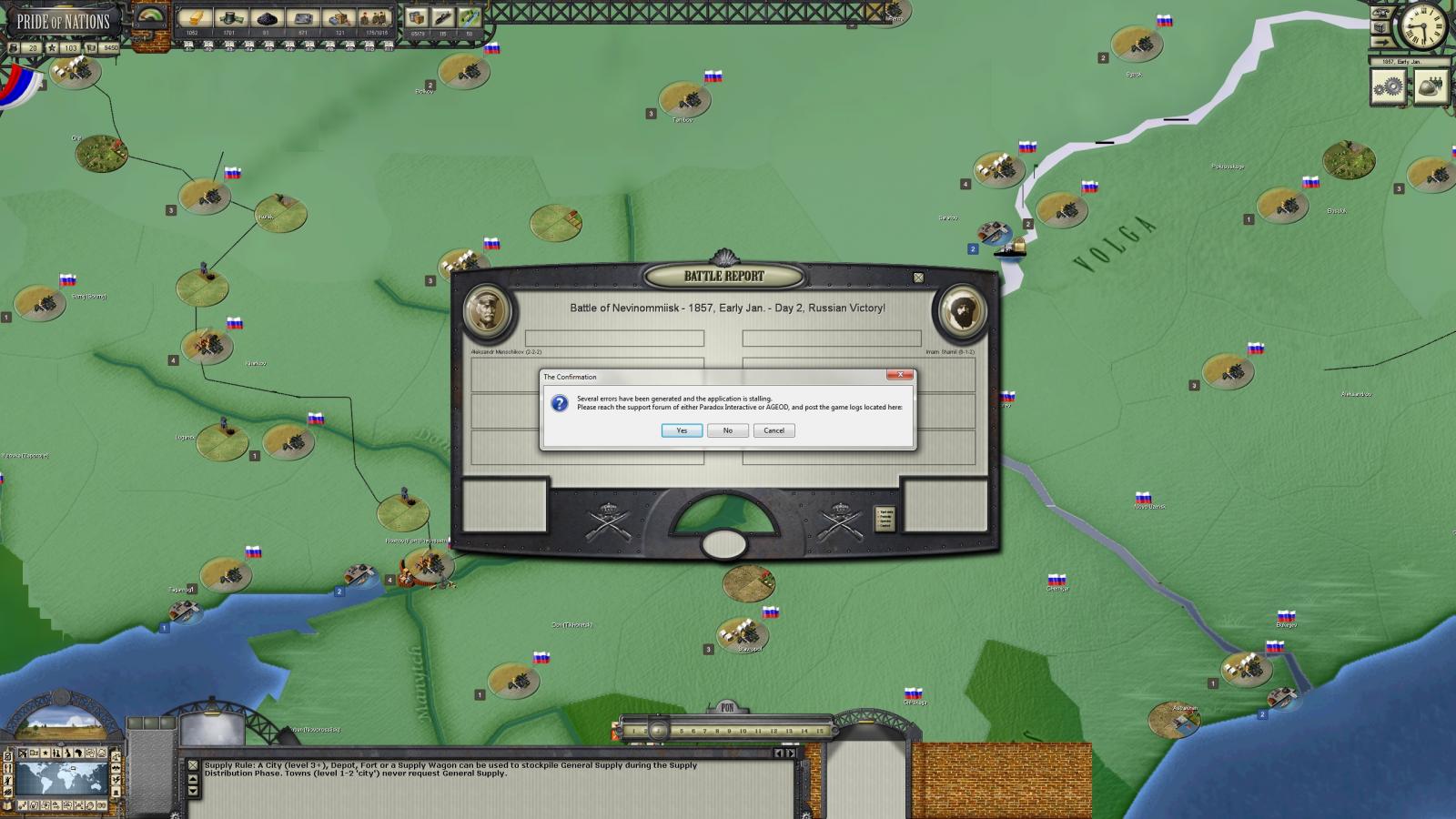 Playing Russia under 1.04 + hot fix. I'm getting to the end of the Caucasus revolt Jan 1857 and have finally pinned down Chief Iman Shamil but am getting a unresolvable battle error. Screen shot of error, logs and game saves attached.