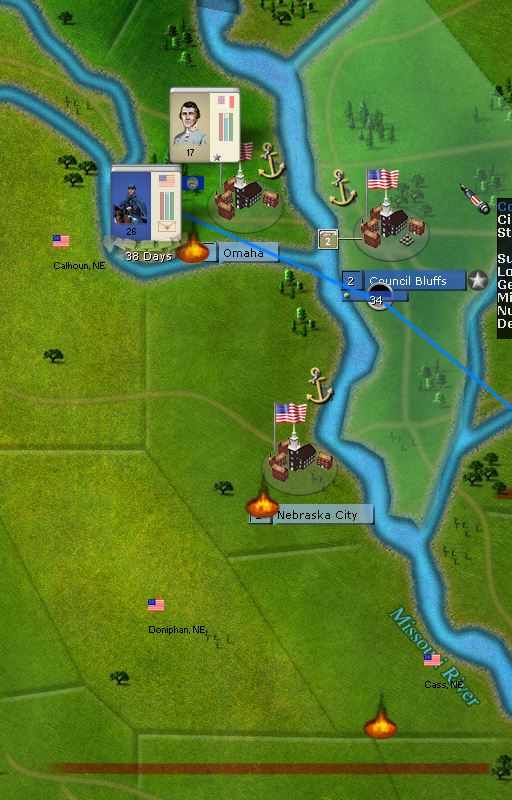 Quantrill appears one region south of Rolla MO in Houston MO. In one turn he moves to Nebraska, one freakin turn. My cavalry in Rolla, one region closer, by the fastest route, will take 38 days to get to same region as Quantrill. That's two and a half turns. Through friendly territory. And did I mention Quantrill has time to pillage every single region he moves through.