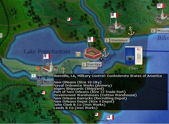 Cromagnonman wrote:Regarding New Orleans, it doesn't work historically, and you pretty much have to take Fort Pike first, then march overland. It can have the dreadful effect of allowing the CSA to rail reinforcements to New Orleans before you can march there. For best effect, you probably want to take a hospital and enough generals that someone will be active.