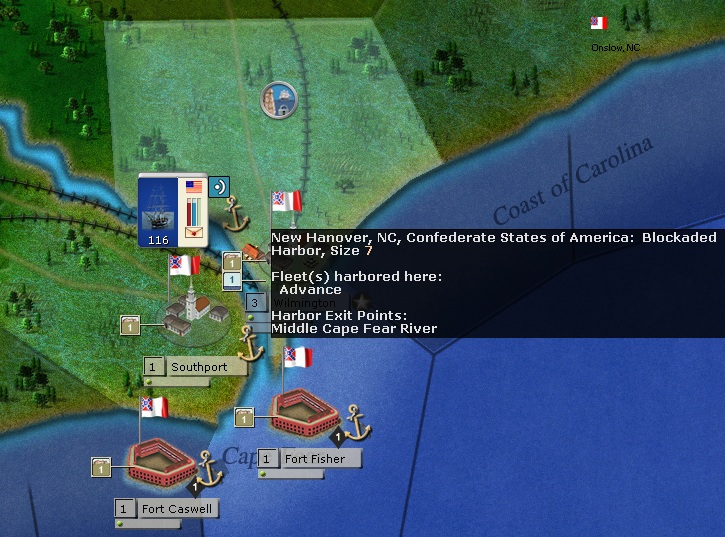 So that's eight Blockade fleets: six for the three ports and one each for Pensy & NC. There's also Savannah (I'm doing things slightly differently in each game).