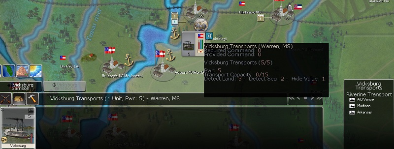 Transport starts campaign as half strength with white slashes to left indicated it has room for more element(s). It received one element, and the hash marks to the left showed that it was at full strength(color change from white) at 3 ships or 3 elements.