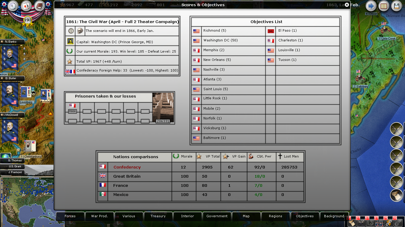 This bugs me for a number of reasons. The easiest to describe is that the South took not just one major northern city, but nearly the entire North-West and didn't gain NM in any proportion to this.
