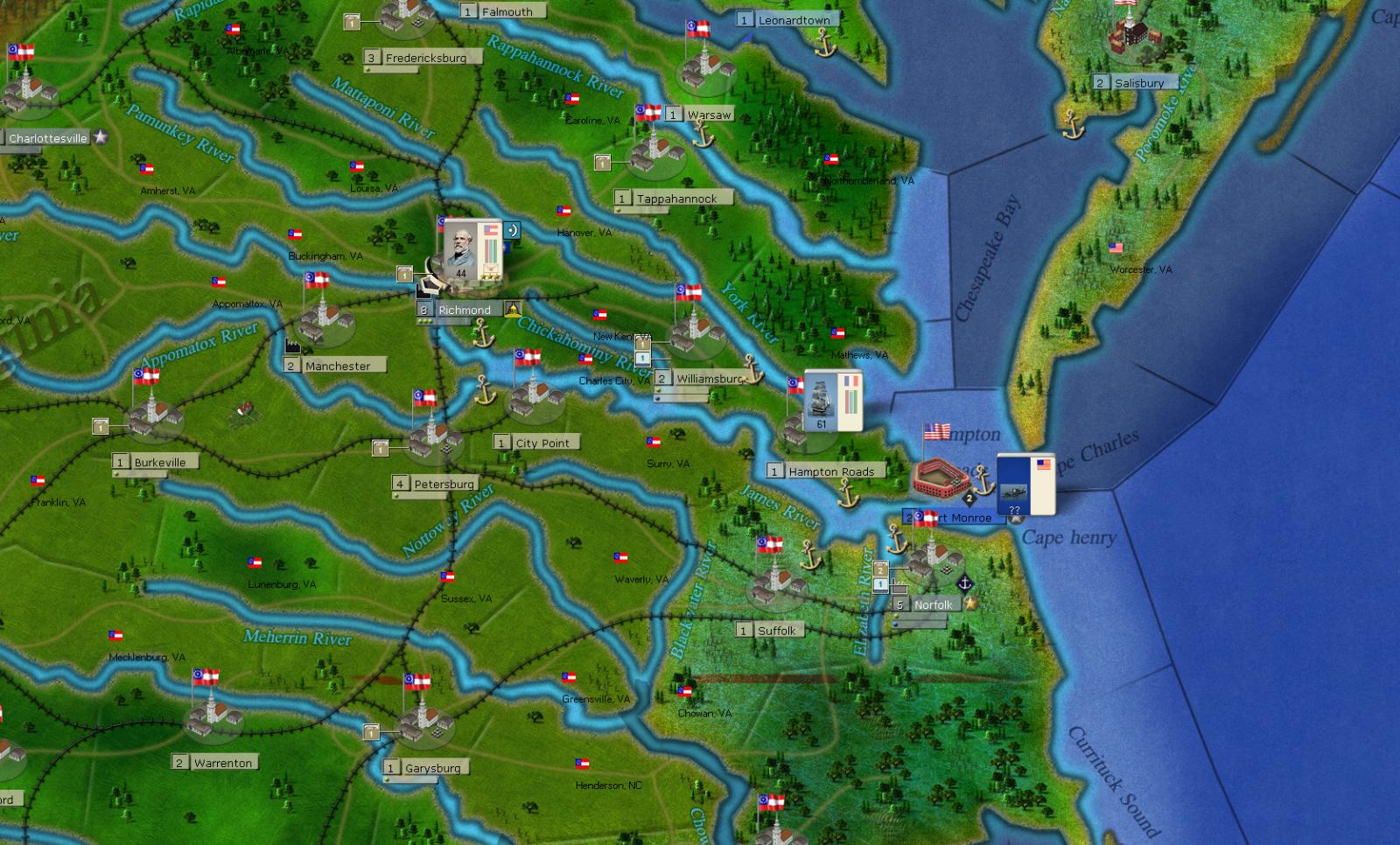 Having the French fleet show up in Hampton Roads/York River may be WAD or just a minor glitch (I would consider this a minor glitch and of no import):