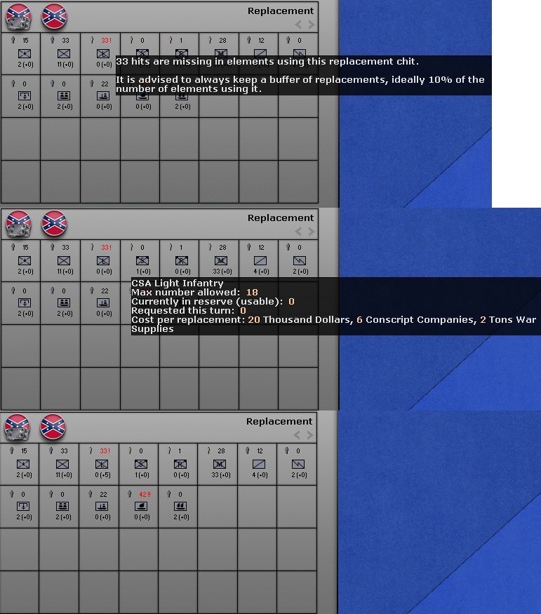 thebull0425 wrote:As an aside, can you purchase chits you don't have in the F2 menu? For cavalry for example, lets say it tells me I have 6 chits missing, but no replacements. Can I still purchase them?