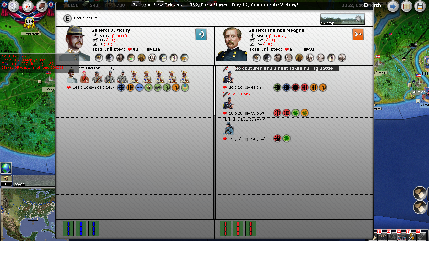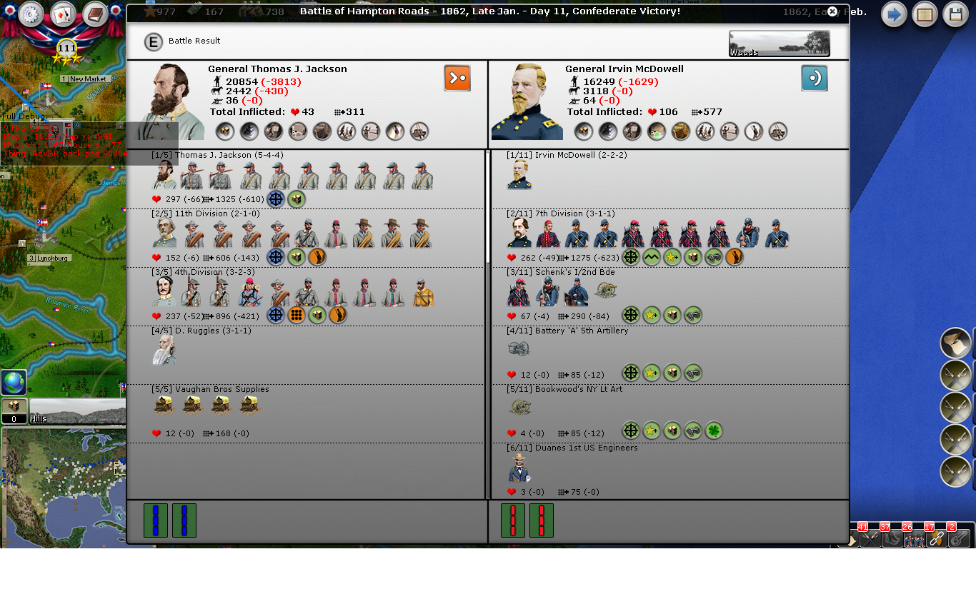 tripax wrote:Athena has the full activation bonus; I usually turn her all the way up. If I continued this AAR beyond April 1862, you would see my East crumble and I would lose. It always happens when I play as a confederate. Part of this test is to see if it still happens, which tells me that the changes don't greatly effect balance. I'm in mid 1862 now (and I've stopped taking screenshots, so I know this AAR will finish after a year in-game), and things are still going ok.