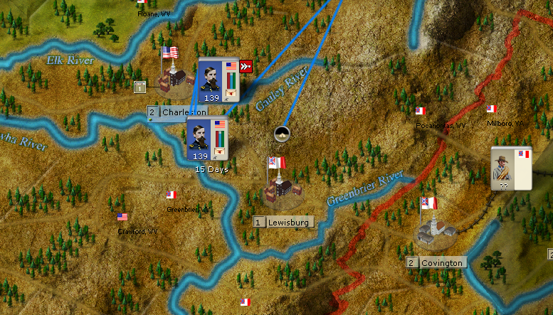 A group of 3 general officers and 3 support units (medical corps, signal corps, and engineering corps) attempted a breakout of Washington DC last turn but were denied. The general officers are in nearby towns recovering from wounds and two of the support units returned to the Army in the capital intact. The supplies of the medical corps unit were captured or destroyed and the men are missing. The unit has been recommissioned in the capital.