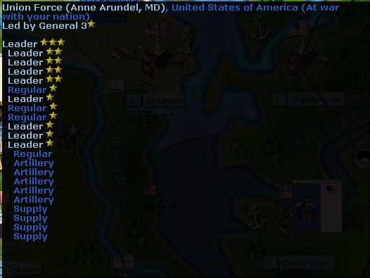 GrayFox has still his army in Annapolis but he has moved some troops to Monroe