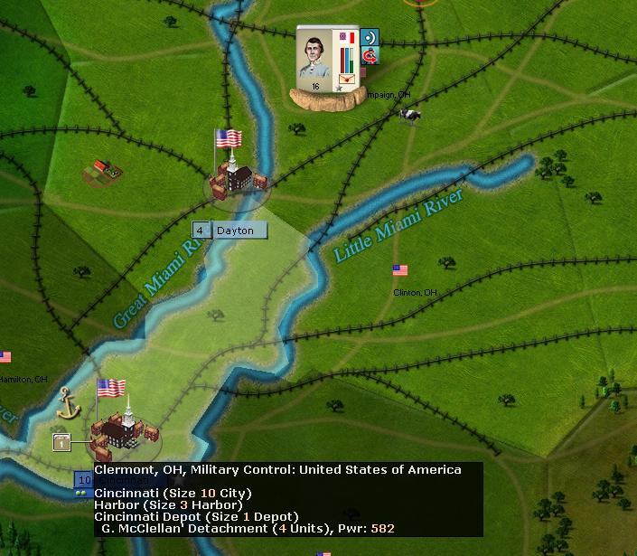 My patrols are continuing their work in Ohio and Indiana and I have identified two places with an important garrison :