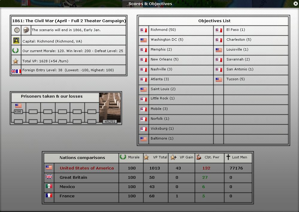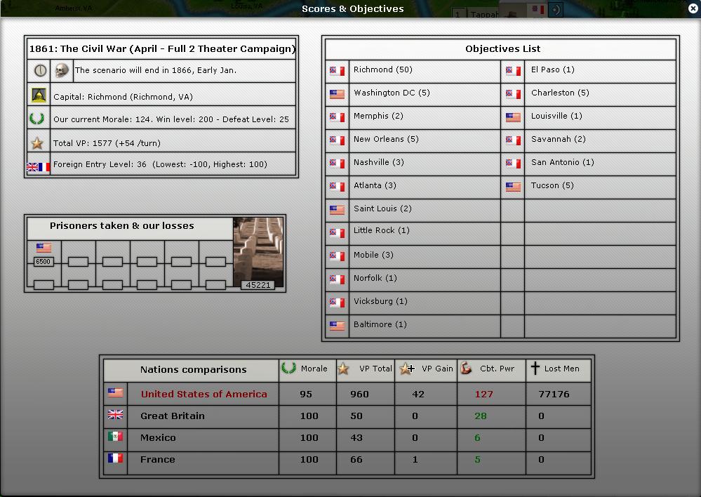 I'm considering another option : move my capital to Atlanta. At least if Richmond is captured I would not suffer from the NM cost.
