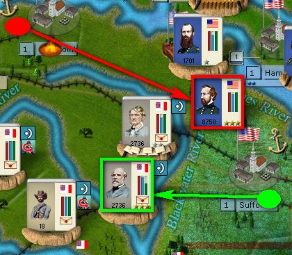 I'm really considering the possibility to attack Suffolk but I'm lacking the needed force to be able to control the line from Petersburg to Suffolk in order to create a Union Pocket. :(
