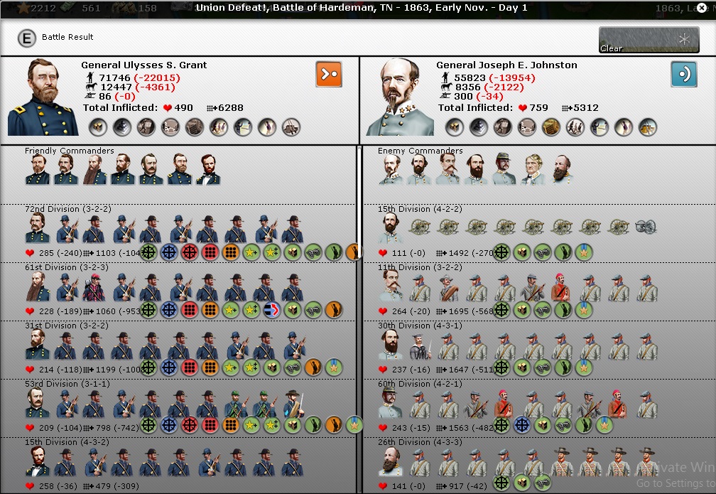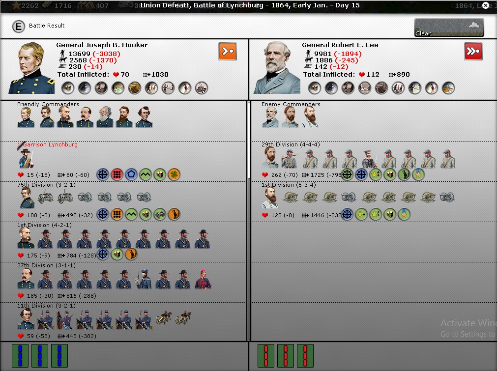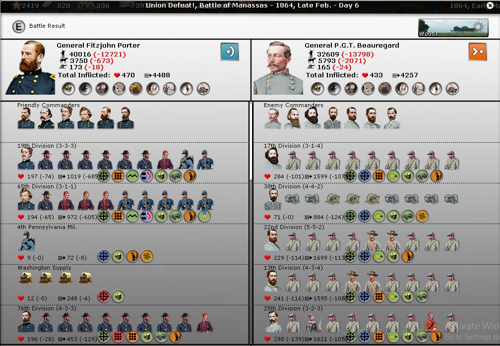 As the Union player the game may be a bit depressing for you, but as the reader it is much more interesting to read about a war wherein the Union does not completely waffle-stomp the opposition. Good luck in the long war.