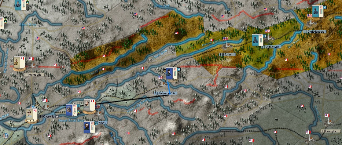 In Tennessee, Grant and Lee hung out in the same area giving each other the evil eye for a long time. I was more than happy to use Lee as a scarecrow, as it allowed me to ship Western divisions to the East.