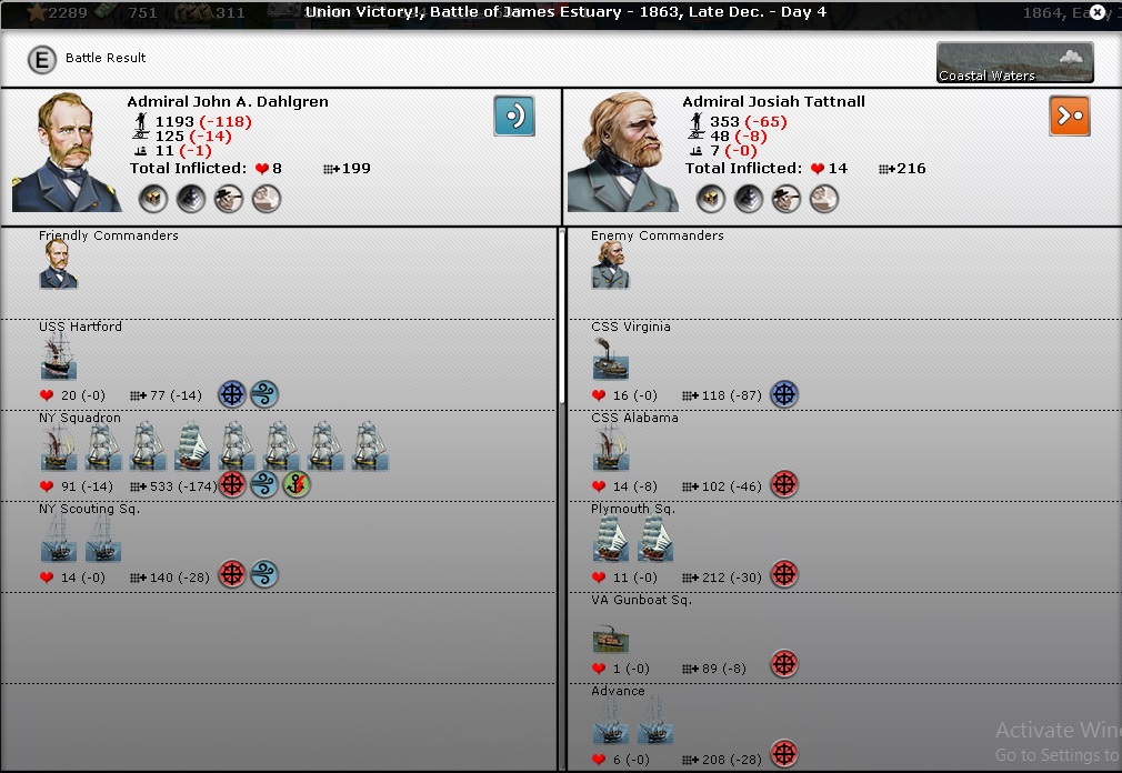 In the James Estuary, Tattnall again faced off against Dahlgren, losing the Plymouth Squadron and another round of battle.