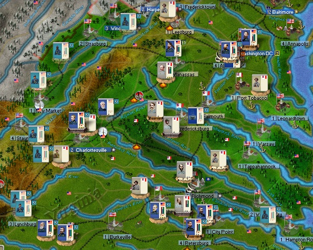 Some of the things I did wrong. In my attack on DC, I failed to understand that, even though I controlled Alexandria, I could not cross the Potomac due to a naval presence. A great opportunity was lost when, because of this, my army failed to march to the sound of the guns and support Jackson’s assault.