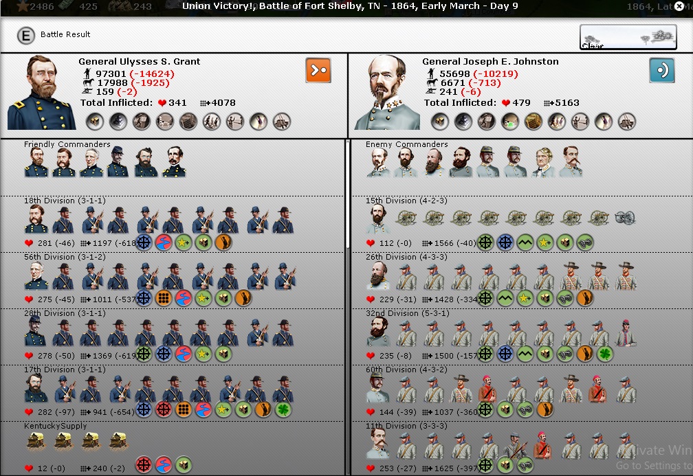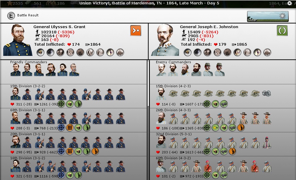 But I have to say...your casualties in the 1864 were brutal! Regardless I enjoyed watching you play with a more historical focus rather than just using all of the Unions advantages known to us with hindsight of the conflict. Great AAR!