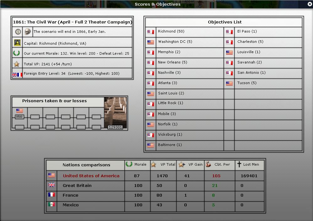havi wrote:So grant didnt activated when u took Garyburg? Now u have cut the union suply lines and it is winter they will have lot of cohesion losses right? And they have to withdraw to the coast and re-group..