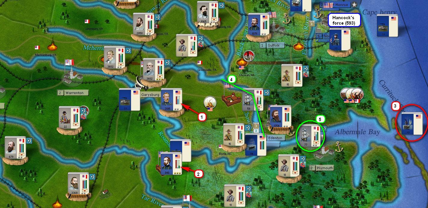 me as I'm one step away from cutting GF from Norfolk : for once the mud is an ally of the North. I'm expecting GF to move some forces there to defend the area, hopefully the move in bad weather will weaken them too.