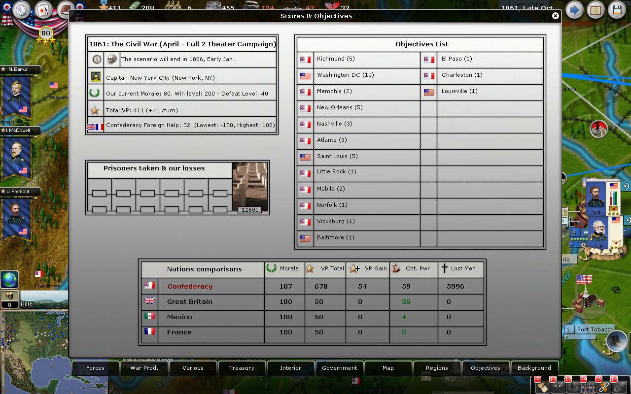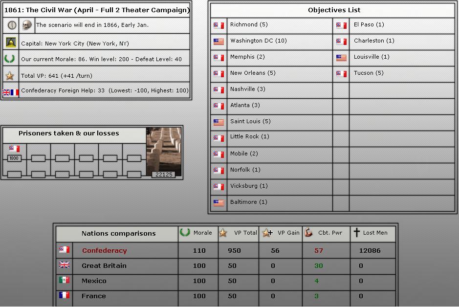 Gray Fox wrote:The pics are from July 1862 in a game against Athena. I had only used Grant in some battles until he was promoted. So this was the quiet before the storm.