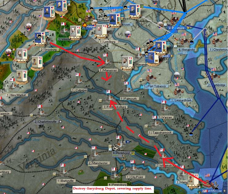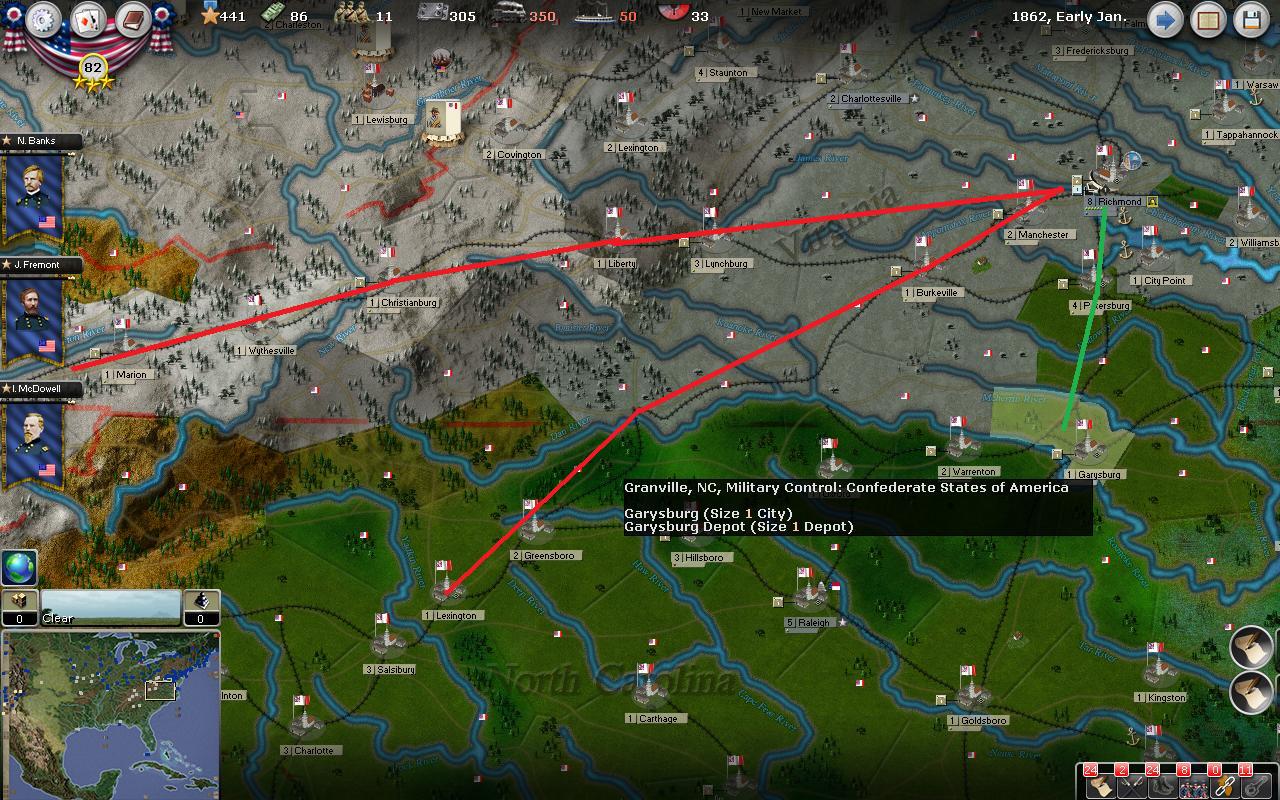 Gray Fox wrote:The nine garrison Divisions are only about 400-500 PWR, but they have supplies and a depot and are entrenched to 4 right now. I have two understrength Cavalry Divisions to counter raiders. I have secured HF. As soon as I get the supply situation fixed, I'll start the next offensive. Lyons and Grant are at HF.