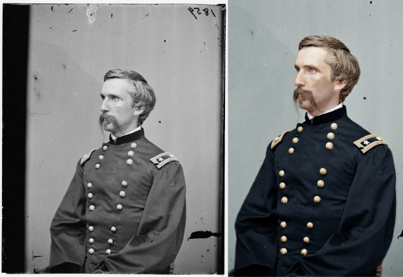 http://civilwartalk.com/threads/black-white-colorization-tutorial.78508/, this is the tutorial. This guy has a ton of great colorizations. Actually, the Gershom Mott one someone posted is his work. You can find some non-watermarked stuff floating around, but the stuff on his site Colorized History is watermarked and is available for purchase. Followed the tutorial this morning and whipped up Henry Prince. Then did Orris Ferry and finished Cooke a few hours ago.
