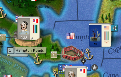 1) Magruder assaults FtMonroe. Under current rule, if Union cannot retreat anywhere else, Union units outside FtMonroe will retreat towards Hampton roads (the very place Magruder held at the start). This kind of retreat is illogical. I am advocating that the code be added so defeated units cannot retreat toward region containing much more units than they have nor to the regions attack originated from(even better would be if the code would check/compare Pwr values).